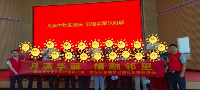在中秋、国庆双节来临之际,南京六合九银村镇银行金牛湖支行,深入金牛湖街道峨嵋社区开展“月满华诞 情融邻里”特别活动,将普惠金融服务、节日文化与党建元素有机结合,为社区居民送上了一份别样的节日贺礼。