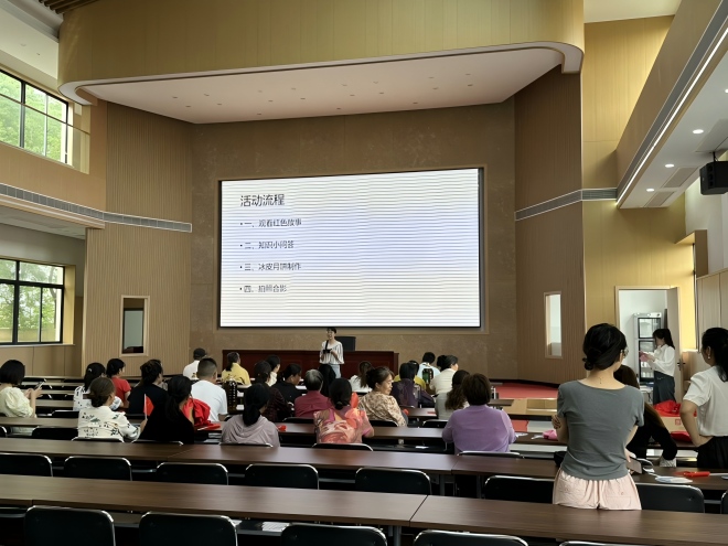 本次活动设置了四大主题区域,内容丰富多样,分别是:观看红色故事、知识小问答、冰皮月饼制作、拍照合影。