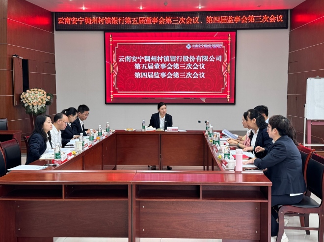 10月11日,云南安宁稠州村镇银行在总行二楼会议室顺利召开2025年第五届董事会第三次会议、第四届监事会第三次会议。全体董事、监事出席会议。