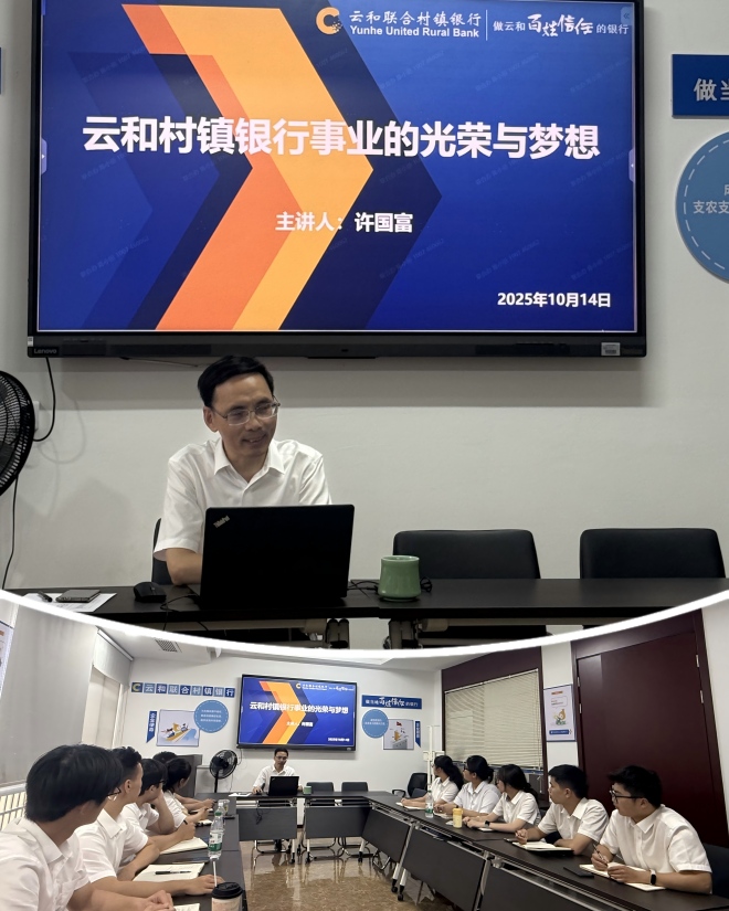 作为浙江云和联合村镇银行“金鹰淬火计划”新员工培养体系的核心课程,近日,由杭州联合银行主发起的浙江云和联合村镇银行董事长许国富以“云和村镇银行事业的光荣与梦想”为题,为新员工带来一堂兼具深度与温度的培训课。课程围绕“传承、实干、同心”三大维度,为新员工筑牢职业根基、明晰成长方向,助力其在“淬火”历练中快速成长为合格的云和村行人。