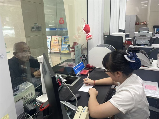柜员小王见状,立刻改变口头询问的交流方式,转身拿起纸笔,并用大号字体写下:“您好,请问您需要办理什么业务?”吴大爷看到文字后,紧绷的神情放松下来,接过笔在纸上回复:“我要取养老金,再帮我看看社保卡上还有多少钱。”了解清楚吴大爷的需求后,小王迅速又准确的办理了业务,将现金双手递交给了吴大爷。