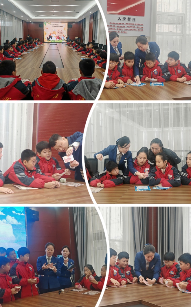 二楼会议室,“从零花钱到梦想基金”主题课堂精彩开讲,枯燥的金融知识变成了生动的“活课”:“货币历史之旅”带孩子穿越时空读懂“钱”的前世今生;“储蓄魔法我最懂”教大家合理规划压岁钱,学会“我的财富我做主”;“反假币小课堂”上手把手传授“一摸、二看、三听、四辨”辨真伪技巧;反诈宣传片则用真实案例提醒孩子们警惕“游戏充值”“免费送皮肤”等陷阱,筑牢资金安全防线。