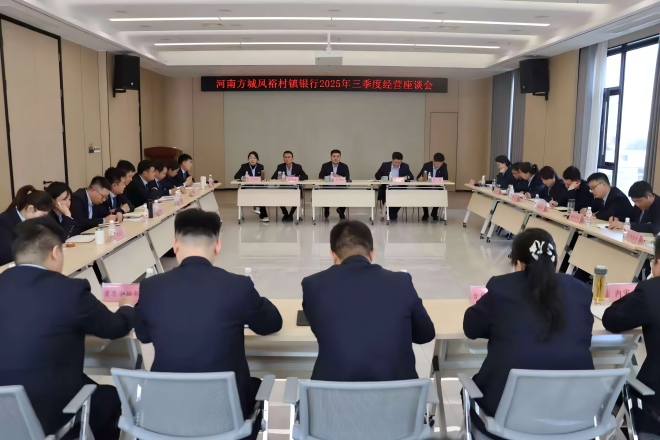 为全面总结三季度经营成效,精准剖析发展短板,科学部署年末收官重点工作,前瞻布局2026年发展路径,河南方城凤裕村镇银行于10月27日在总行三楼316会议室召开2025年三季度经营分析会。全体中层及以上管理人员参加会议。