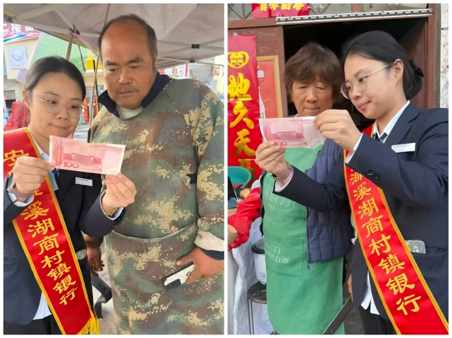 “您看,真钱的水印摸起来有立体感,假钱大多模糊不清!”在濉溪县广场上,濉溪湖商村镇银行的工作人员正拿着货币样本,手把手教村民识别假币。近日,我行聚焦农村群众金融知识需求,开展“反假币进乡村”系列宣传活动,让安全用钱意识扎根基层,打通反假货币宣传“最后一公里”。