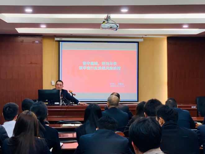 11月13日,吉安稠州村镇银行(以下简称“我行”)在四楼会议室组织全行员工开展反洗钱专题培训,培训由董事长李爱龙主持,旨在强化全员风险合规意识,提升反洗钱履职能力,为业务稳健发展筑牢安全屏障。