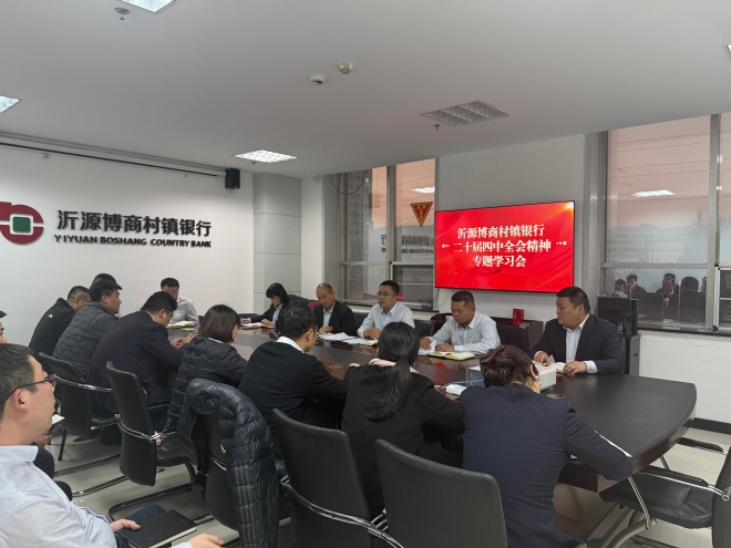 为切实把思想和行动统一到党的二十届四中全会精神上来,近日,沂源博商村镇银行召开专题学习会,行领导班子带头领学,全体员工集中研讨,深入领会全会关于推进国家治理体系和治理能力现代化、服务实体经济高质量发展等核心要义,将学习成果转化为扎根沂源、服务“三农”与地方经济的务实举措。
