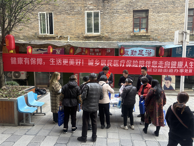 这是该行联合延安路街道办事处开展的“健康有保障,生活更美好”宣传活动现场。长桌上,鸡蛋、纸巾等暖心礼品堆得满满当当,蓝色宣传袋里装着医保政策手册和反诈防骗指南;桌旁,居民们围得里三层外三层,有拿着手机请教缴费步骤的,有翻着手册询问报销比例的,还有拉着客户经理聊“陌生电话咋辨别”的。