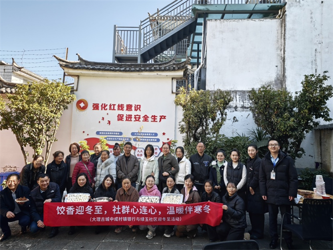 冬至将至,寒意渐浓,为增进银行与社区居民的情感联系、传递温暖关怀,大理古城中成村镇银行与绿玉社区于12月19日联合举办“饺香迎冬至,社群心连心,温暖伴寒冬”暖心联谊活动。社区居民代表、社区工作人员及银行员工数十人参与,营业网点大厅内洋溢着温馨热闹的氛围。