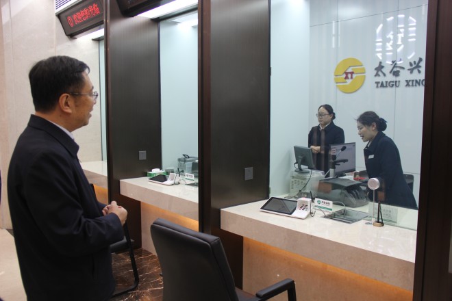 凯歌辞旧岁,情暖岁寒时。12月31日,山西银行党委书记任凯、行领导解志敏、高鸿斋、李国栋一行在百忙之中,深入太谷兴泰村镇银行进行走访慰问,为奋战在基层一线的工作人员致以诚挚问候和新年祝福,并就节前运营保障、安全生产、风险维稳等重点工作进行检查。该行董事长范杰祥及领导班子成员全程陪同。