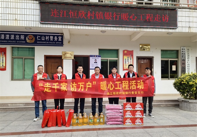 为深入践行金融工作的政治性、人民性,积极履行社会责任,连日来,在福建连江恒欣村镇银行的统一部署下,各支行坚持党建引领,持续开展“走千家 访万户”暖心工程活动,用实际行动为困难群众送上冬日关怀,诠释“连江人自己的银行”的品牌内涵。
