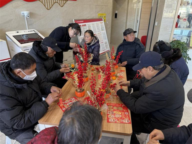 “红运开年 福满厅堂”活动在民泰银行维扬支行热闹启幕。营业厅内新老挚友齐聚,色彩鲜亮的花材、寓意美好的挂件、讨喜的福字,在大家剪扎搭配间,一桶桶精致饱满的“发财树”接连诞生。众人边做边聊,分享生活规划与新年期盼,欢声笑语充盈厅堂。这份亲手打造的开年信物,藏着传统手工的乐趣,更装满民泰银行的诚挚祝福,让大家把新年喜气与福气一同带回家。