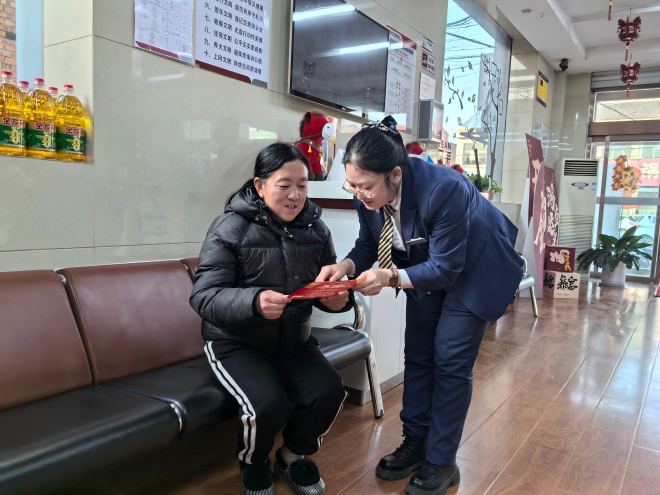 一踏入古城支行营业厅,浓浓的“开门红”气息扑面而来!红灯笼高悬、中国结摇曳,墙面张贴的“开门红福利清单”“暖心服务承诺”格外醒目,喜庆温馨的布置让客户倍感亲切。为减少等待时间,支行开设“开门红专属绿色通道”,安排业务骨干专人引导、优先办理,从咨询解答到业务办结,全程高效衔接、细致周到。此外,厅堂设置便民服务角,提供热水、老花镜、应急药品等贴心物资,让客户在办理业务的同时,感受到家人般的温暖。