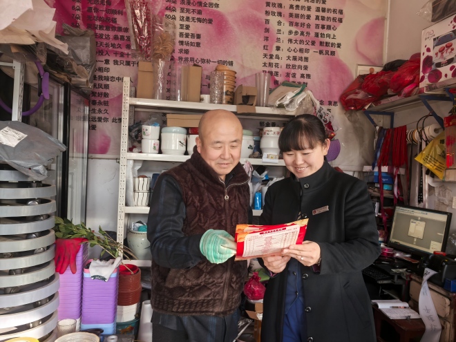 秉持“金融服务不能等客上门,要主动敲门”的理念,古城支行打破传统服务边界,组建由业务骨干带头的“外拓服务先锋队”,靶向聚焦周边农户、沿街商铺、小型集市等重点客群,提前规划走访路线、梳理需求清单,开展“一对一”上门服务。员工们带着金融产品手册、移动服务设备,逐户与商户、农户面对面沟通,详细了解经营状况、资金周转需求,量身定制经营贷款、联都e付、储蓄存款等适配产品方案,现场讲解优惠政策、办理流程,手把手指导操作,把便捷的金融服务送到客户“家门口”,用真心实意搭建银企、银农合作的“连心桥”。