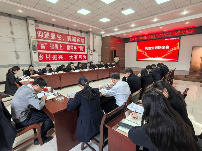 为精准掌握全行各部室、支行工作推进成效,进一步凝聚发展共识、提振奋进士气,系统部署下一阶段重点任务,1月16日,云南安宁稠州村镇银行在总行二楼会议室召开1月经营分析会暨风险业务联席会。安宁村行领导班子成员、各部室及支行负责人、团队长参加会议。