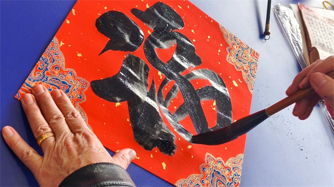 一幅幅笔精墨妙、寓意吉祥的春联与福字在笔下次第舒展,琳琅满目、暖意十足。既有“国泰民安逢盛世,风调雨顺颂华年”的家国情怀,也有“阖家欢乐福满堂,万事如意喜盈门”的温馨期盼,更有“财源广进事业兴,马到成功启新程”的美好祝愿,笔墨之间尽显中华传统文化的深厚底蕴,也弥漫着浓浓的新春喜庆氛围。