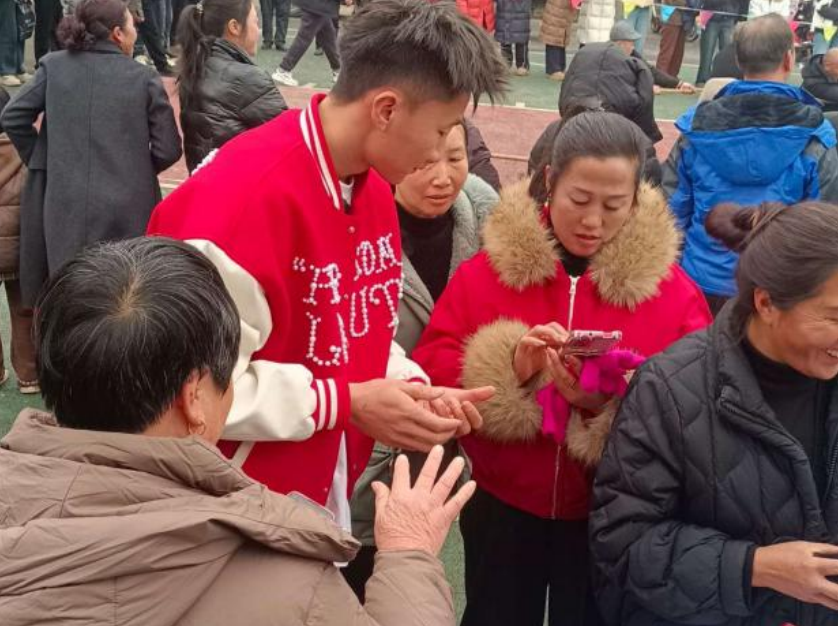活动现场,篮球场上激战正酣,场边观众人声鼎沸,加油声此起彼伏。趁着中场休息与人流集中的有利时机,支行宣传小分队迅速行动,携带业务宣传资料与定制抽纸融入人群。工作人员化身“金融教练”,一边为村民加油喝彩,一边递上反假币宣传折页,送上贴心的新春祝福。