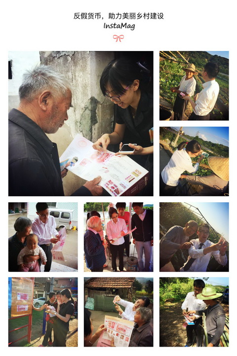 此次活动我行立足农村地区,以贴近农村、贴近农民、贴近城乡结合部为原则,因地制宜,注重结合广大农村和基层特点,关注农村留守人员,通过介绍2015年版第五套人民币100元以及5元、10元、20元等小面额纸币防伪特征和识别方法,《中国人民银行反假人民币奖励办法》等反假货币工作主要管理政策,结合真实案例,宣传假币犯罪的主要特征、惯用手法和防范措施等,提高农村居民防范假币能力,使广大农村居民更加了解人民币,爱护人民币,扩大社会影响面,激发社会领域反假货币积极性。根据各机构此次开展的宣传活动制作的电子宣传册短短两天点击量近4000次。