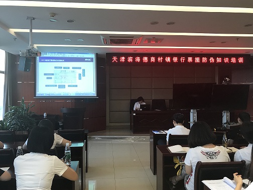 8月8日晚,天津滨海德商村镇银行针对会计人员举办了银行票据防伪技术培训。 主讲人主要从2010 版银行票据简介、2010 版银行票据防伪识别技术以及案例讲解三个部分对于票据的鉴别进行了讲解。