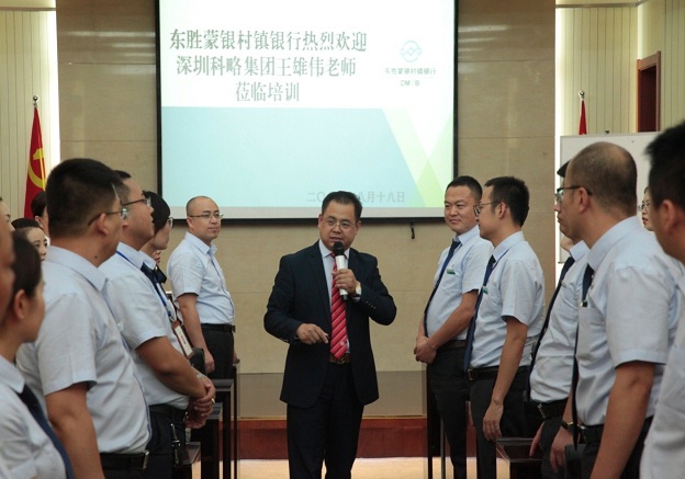 为了有效提升企业凝聚力和执行力,切实增强经营管理和风险防范能力,近日,内蒙古东胜蒙银村镇银行特邀深圳科略集团金牌讲师王雄伟老师和他的助理来该行,进行了进行《实效执行力》的专题培训。该行主要领导、中层干部和部分员工共80多人参加培训。