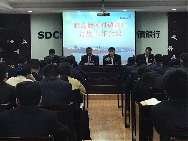 10月12日晚,睢县德商村镇银行召开了月度工作会议,行领导班子,全体员工均参加了会议。