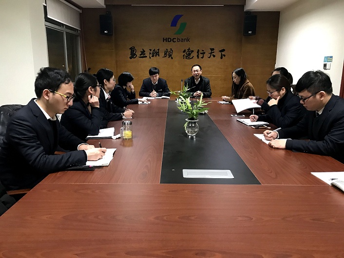 1月30日,海宁德商村镇银行盐官支行进行支行领导班子年度考评。总行副行长何成松、风险部副总经理姜永华、盐官支行全体员工参加考评会议。