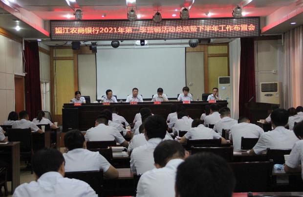 8月17日,望江农商银行在七楼会议室召开2021年第二季营销活动总结暨下半年工作布置会,总行班子成员、行长助理,各部门经理、各支行行长、分理处主任,清收大队中队长,全体稽核员共60余人参加会议,会议由黄心丽监事长主持。
