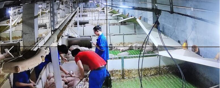 新快报记者在金农公司看到,生产基地已建起三座养猪大楼,一些配套设施则仍在加紧施工中,在 " 二师兄 " 监控中心的大屏幕里,可以实时观测到养猪场的监控情况。