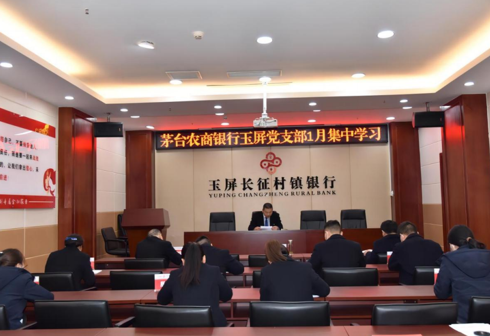 1月28日晚,茅台农商银行玉屏党支部召开1月集中学习会议,会议由党支部书记敖贤军主持,全体党员,入党积极分子及员工代表参加会议。