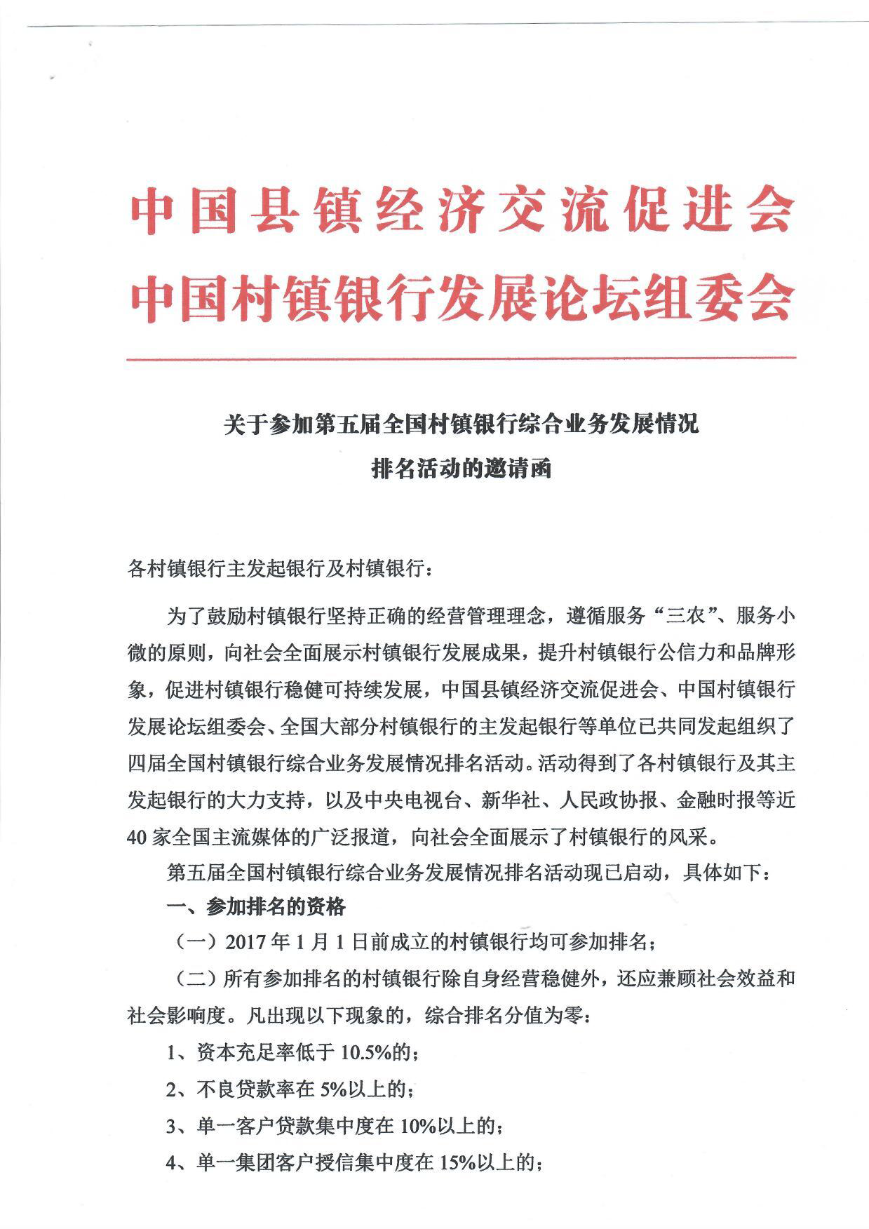 中国县镇经济交流促进会、中国村镇银行发展论坛组委会、部分主流村镇银行主发起银行 联合邀请